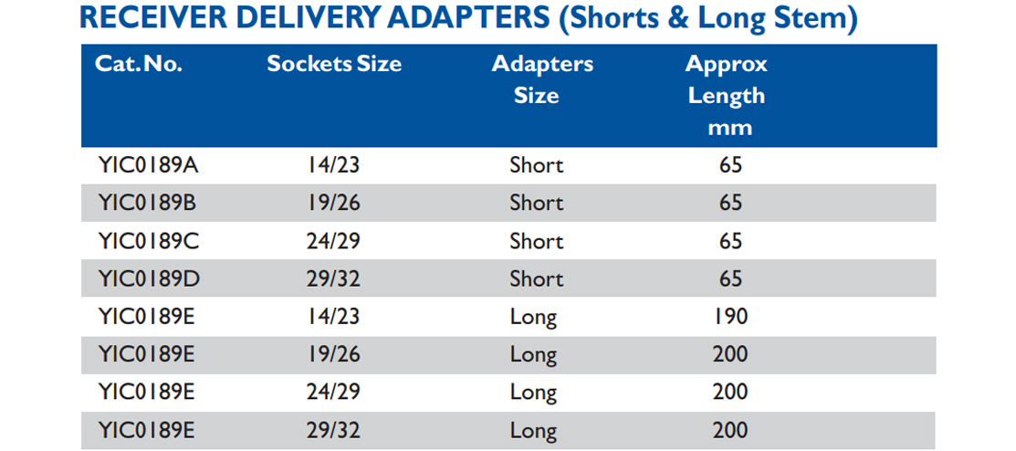 RECEIVER DELIVERY ADAPTERS (Shorts & Long Stem)